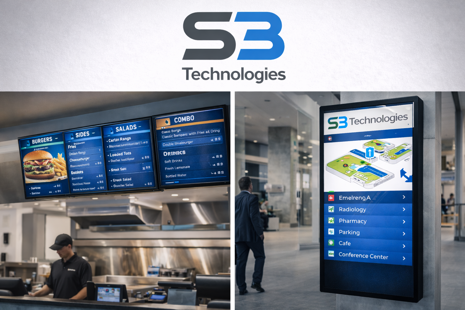 Beyond visual impact, digital signage plays a critical role in safety and navigation. S3 solutions support: